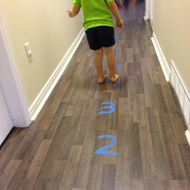 Đây là một cách tuyệt vời để con bạn làm quen với các chữ số. Cắt những chữ số lớn và cố định xuống sàn nhà bằng băng keo, hành lang nhà bạn đã trở thành nơi học toán sôi động. Đưa ra những con số nhất định và con bạn sẽ phải nhảy đúng lên số đó, trong lúc nhảy bé cũng đếm luôn số bước nhảy rồi. Đây là trò chơi hoàn toàn phù hợp với những bé hiếu động.