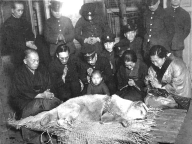 Người đàn ông ra ngoài săn bắn, để con chó ở nhà trông chừng đứa bé. Khi ông trở về, nhìn thấy khắp sàn nhà toàn là máu, nhưng lại không thấy đứa bé đâu cả. Còn con chó thì vừa liếm máu tươi ở khóe miệng, vừa vẫy vẫy cái đuôi vui vẻ nhìn ông.