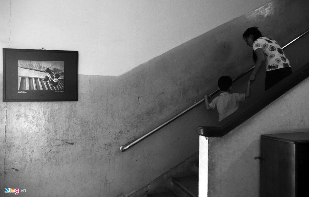 Sau mỗi buổi học, 2 mẹ con tiếp tục vật lộn với những bài tập vận động dọc hành lang và cầu thang.