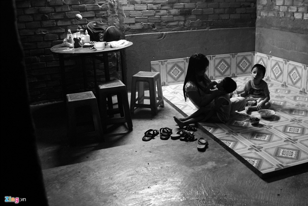 Người mẹ trẻ ăn vội miếng cơm khi các con trai đã chìm vào giấc ngủ. Tình yêu và hy vọng là động lực để chị bước tiếp trên chặng đường khó khăn.