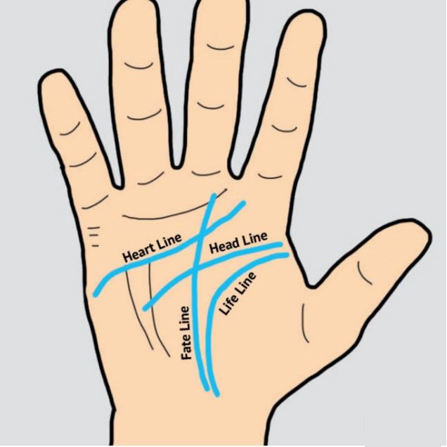 Nhìn vào tay thuận của bạn, tìm ra bốn đường tình cảm, trí tuệ, sinh mệnh, sự nghiệp.