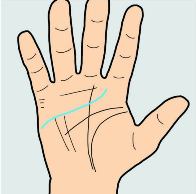 6. Nằm ngang kéo dài từ mép trên đến mép dưới bàn tay (cắt ngang bàn tay): Là người không bộc cảm xúc ra ngoài.
